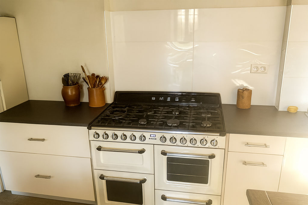 Réfrigérateur - Congélateur - Évier - Piano de cuisson gaz SMEG avec 7 feux et 3 fours - Micro-ondes - Vaisselle - Lave-vaisselle - Lave-linge