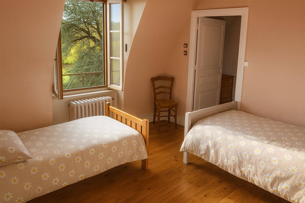 Familles et amis peuvent s’y retrouver pour des moments conviviaux, autant en extérieur : balade dans le parc du château, dans le petit bois et son potager ou dans l’île privée entourée de sa rivière, qu’en intérieur : salle de jeux avec baby-foot, salon cosy avec piano à queue et salle à manger spacieuse.