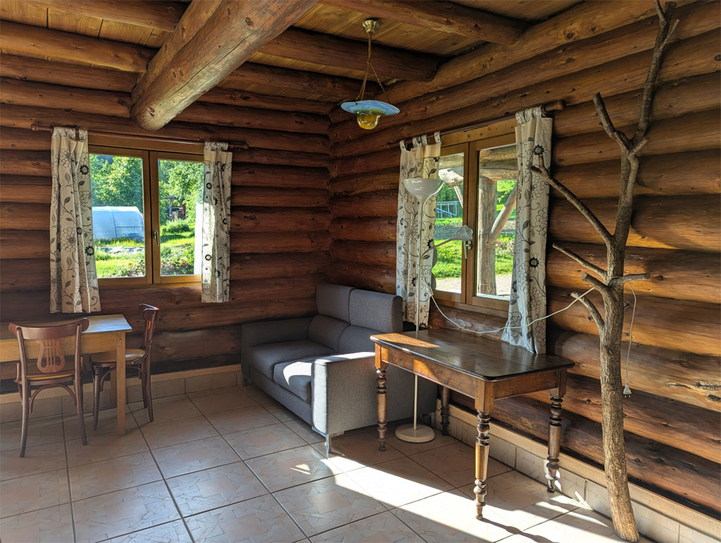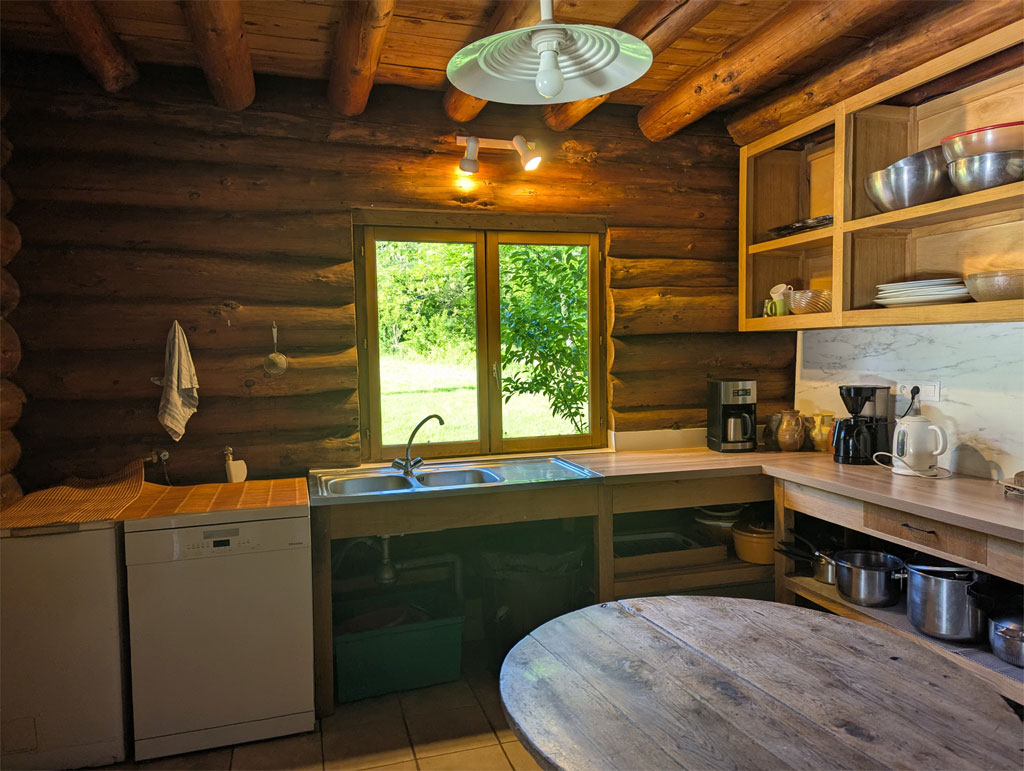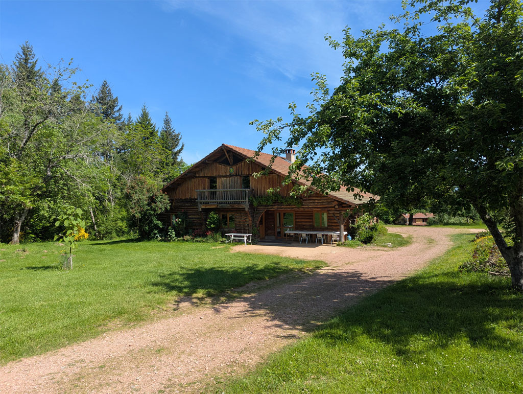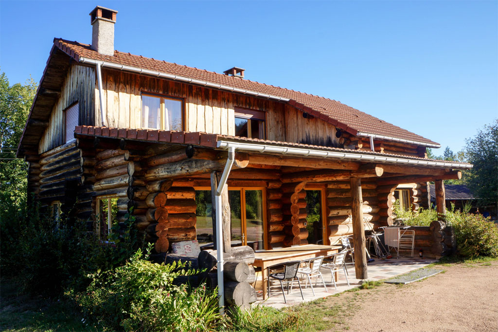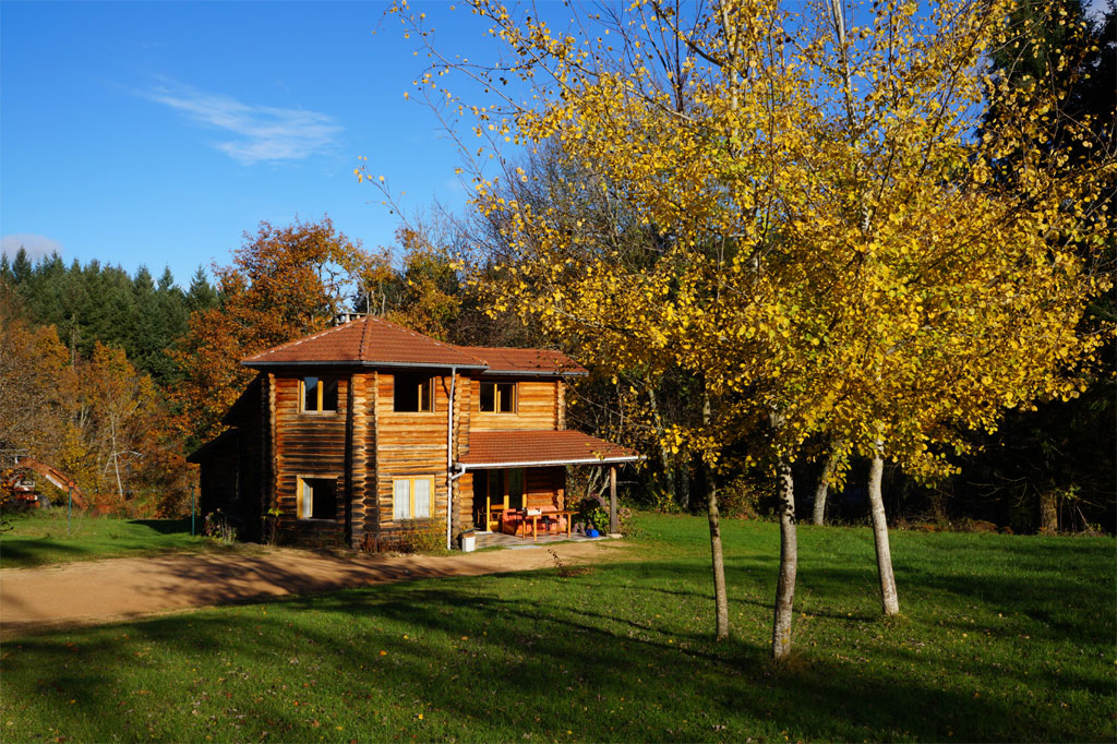 Quatre fustes (chalets en rondin) sur un domaine de 5 hectares, en pleine campagne :
