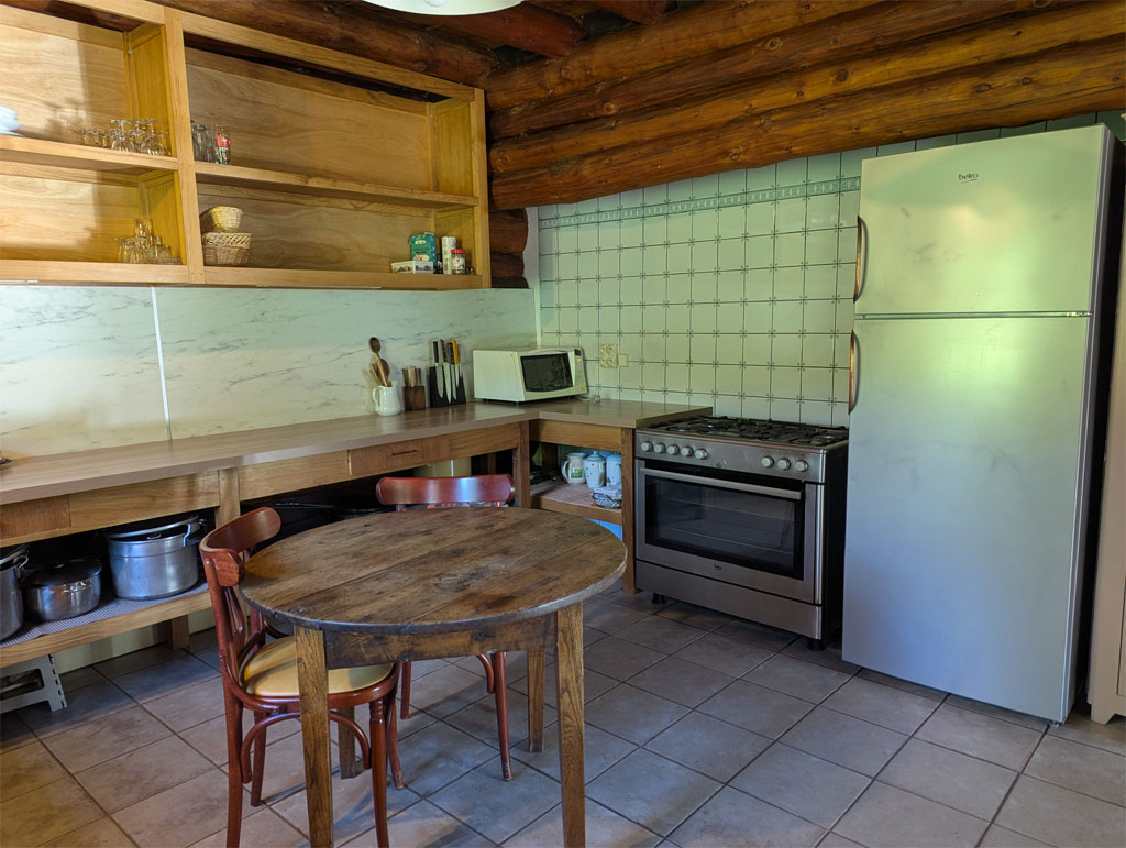 Cuisine du grand gîte : Réfrigérateur (x2) - Congélateur - Cuisinière gaz 5 feux - Four - Micro-ondes - Cafetière filtres (x2) - Bouilloire - Vaisselle - Lave-vaisselle - Lave-linge