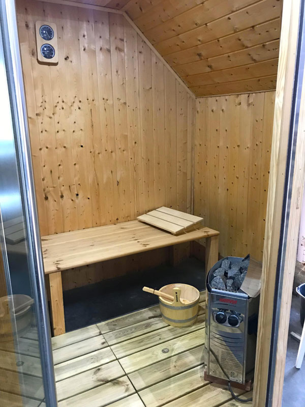 Une cuisine avec accès sur le jardin et la piscine, équipée d'un réfrigérateur 300l, une plaque à induction 4 feux, un four micro ondes, un évier, un lave-vaisselle, appareils à raclette. Sauna dans bâtiment séparé.