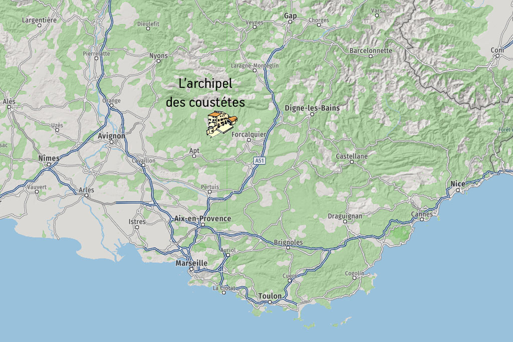 Soyez les Bienvenus à l'Archipel des Coustètes, un lieu de vie collective sur une colline provençale de 60 hectares. Un mas majestueux accueille toute l'année des groupes pour des stages, formations et séminaires autour de la coopération, la créativité et toutes sortes de soins.