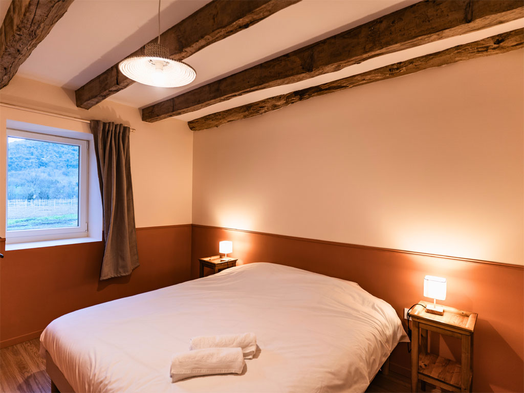 Le grand gîte, l'Atelier, dispose de 5 chambres, toutes avec leur salle de bain privatives, et d'une grande pièce de vie au rez-de-chaussée avec cuisine ouverte, salon et salle à manger pouvant accueillir jusqu'à 15 convives sur 60m². Une terrasse privée permet aussi de profiter des extérieurs en nombre.