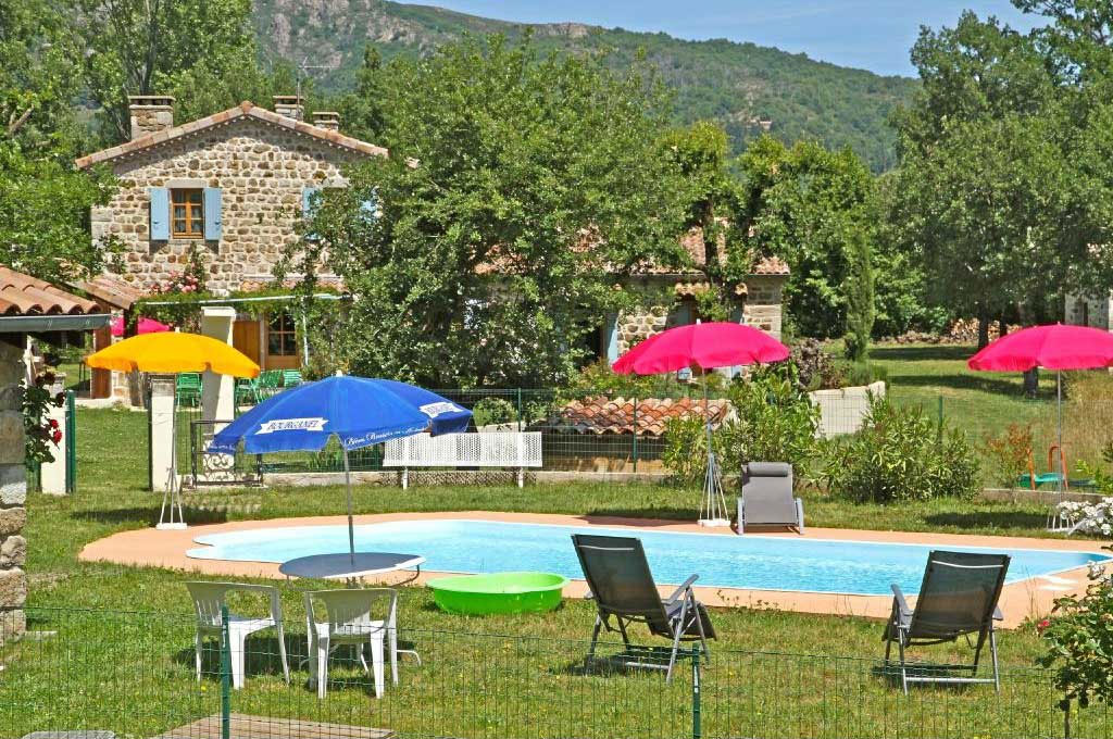 Au pied du volcan de Jaujac grande maison en pierre, au calme, avec vue sur les montagnes et entourée d'un parc arboré d'un hectare. Piscine au sel privée, cuisine d’été extérieure avec plancha et four à pizza. Grand espace naturel de randonnée et promenade de 40 hectares. Village de caractère de Jaujac à 400m à pied avec tous les commerces à proximité. Rivière avec baignade.
