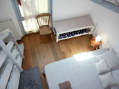 Chambre 2 : 2 lits simples au 1er niveau et 1 lit double dans sa mezzanine.