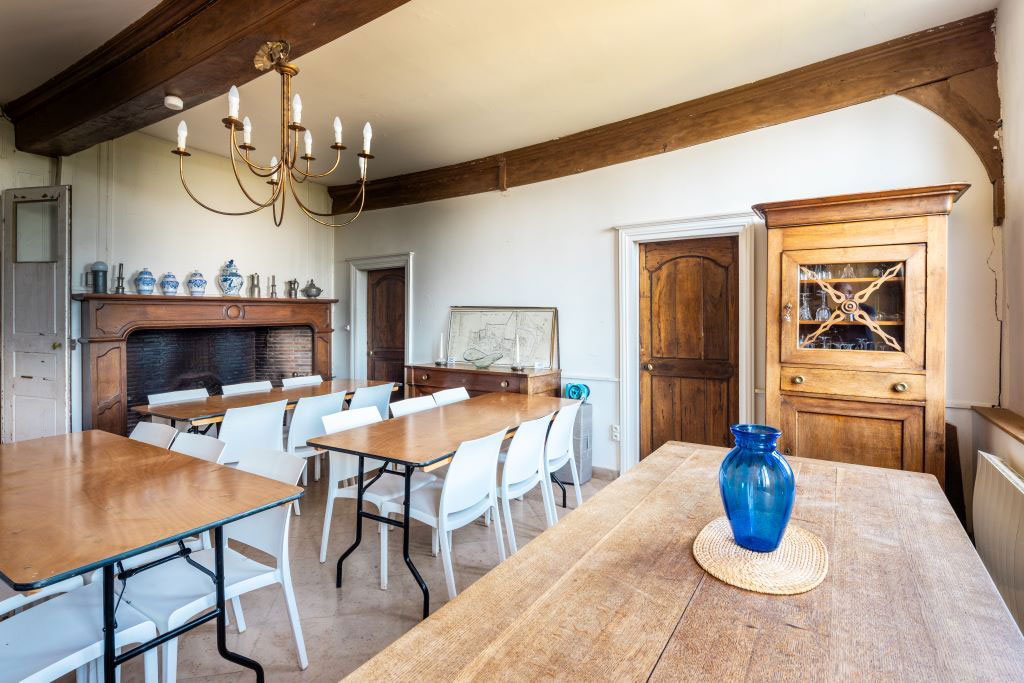 Salle à manger avec cheminée, capacité de 8 a 32 pers à table