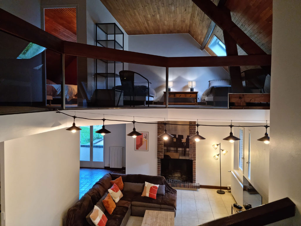 Dotée d’équipements pratiques et modernes, elle est pensée pour un séjour agréable en famille, entre amis ou dans le cadre professionnel. Un vaste salon lumineux au plafond cathédrale, de grands lits (160-180 cm), une connexion internet ultra-rapide accessible partout (même dans le parc!) ainsi qu’une excellente couverture téléphonique et de l’espace pour se sentir partout à l’aise et sans contrainte.