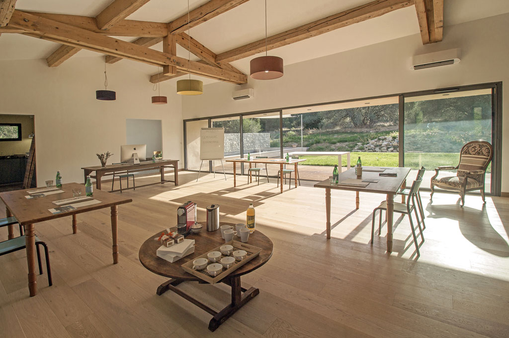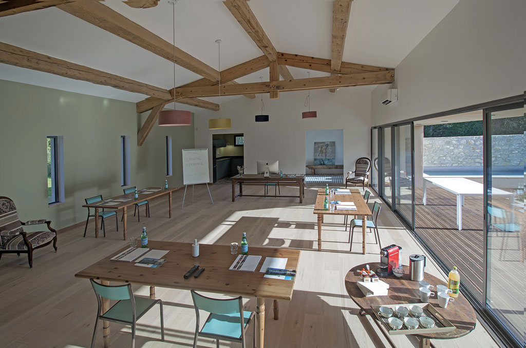 De plus, nous avons une très belle salle de 96m² avec un parquet en bois pour accueillir des séminaires, stages ou formations.
