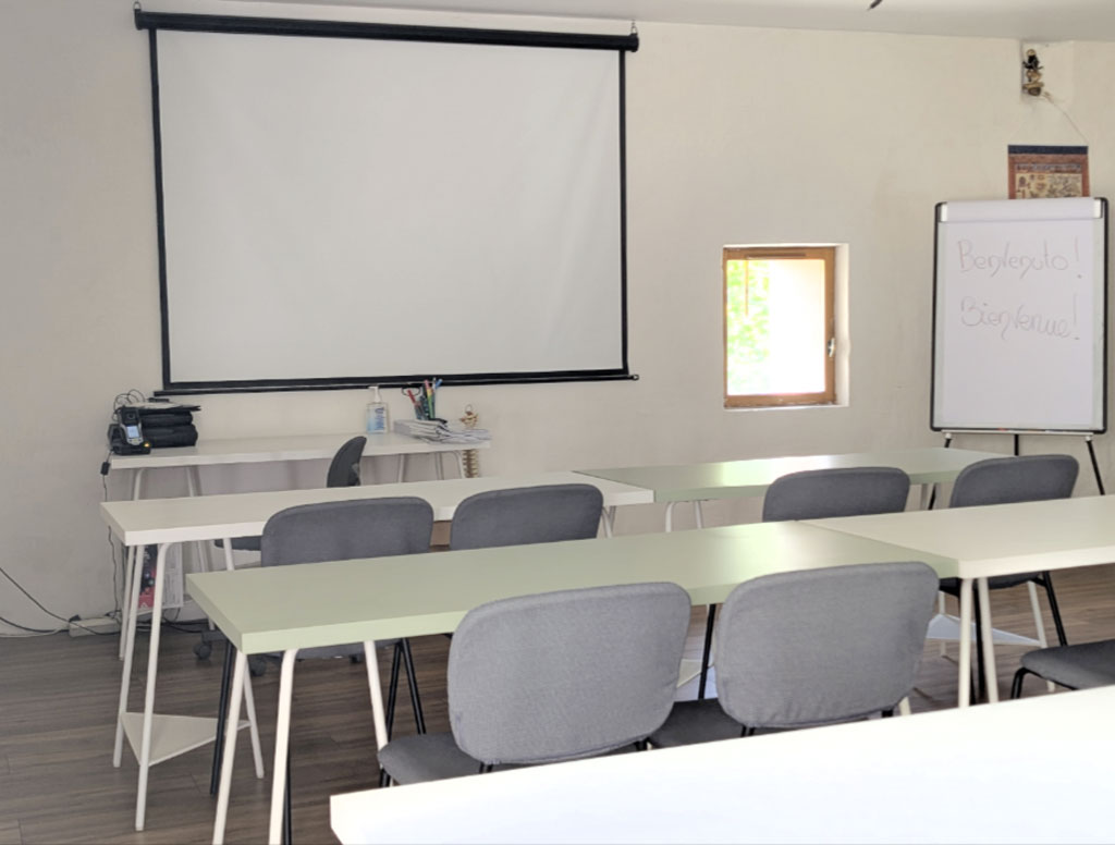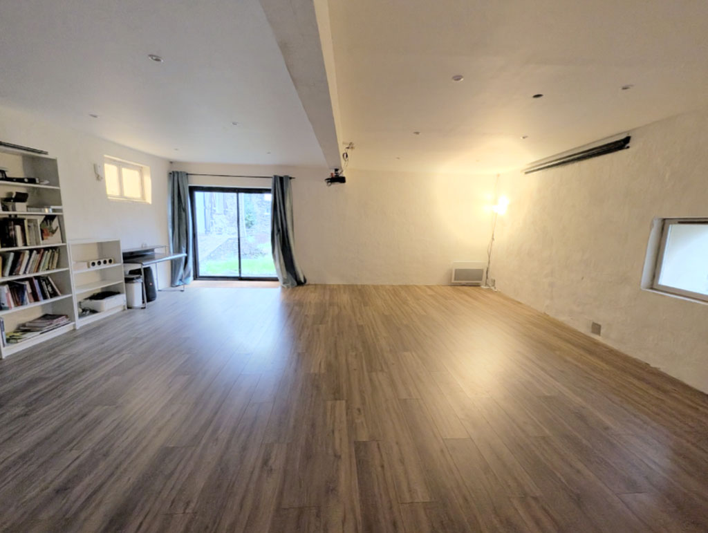 Complètement modulable selon vos besoins : Grand espace de jeux pour vos vacances mais aussi espace de travail équipé (tables, chaises, tables de massage, vidéoprojecteur...)
