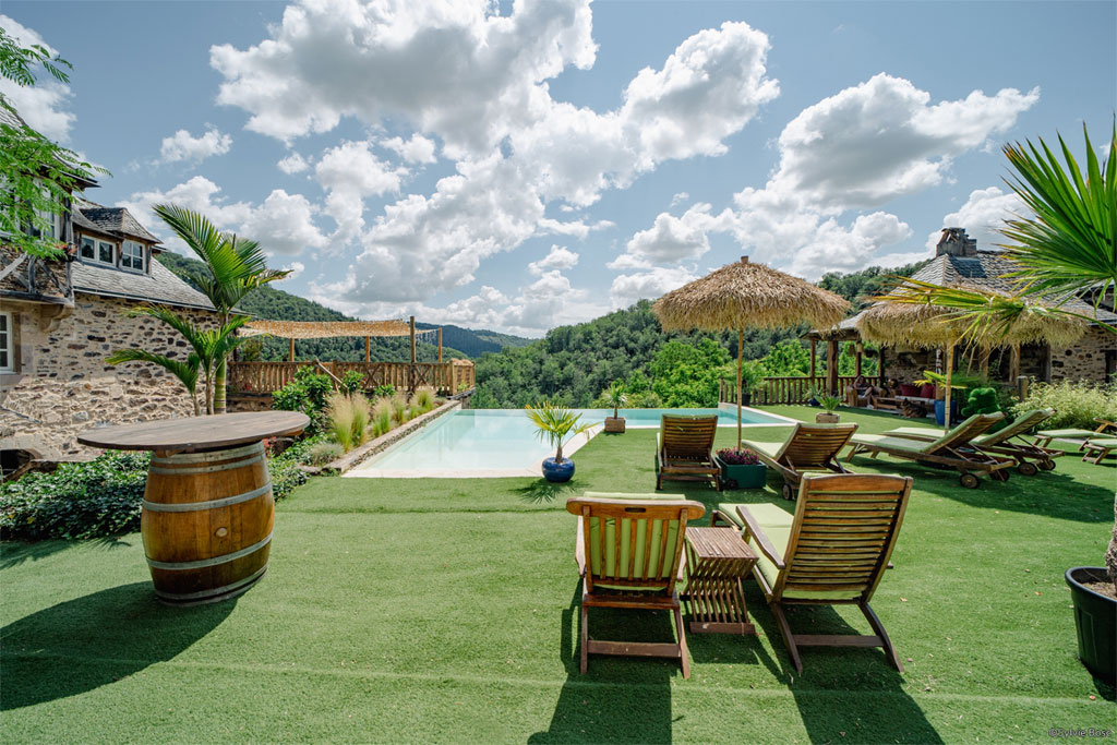 Un lieu unique, confidentiel et hors du temps qui propose 11 chambres avec salle de bains privatives pour 28 couchages et sur place piscine à débordement, spa, terrain de tennis, accès privé à la rivière ...