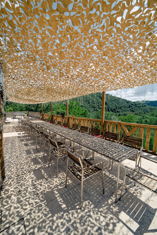 - Une salle à manger tout équipée donnant sur une terrasse panoramique permettant de manger pour 28 personnes en intérieur ou en extérieur avec BBQ