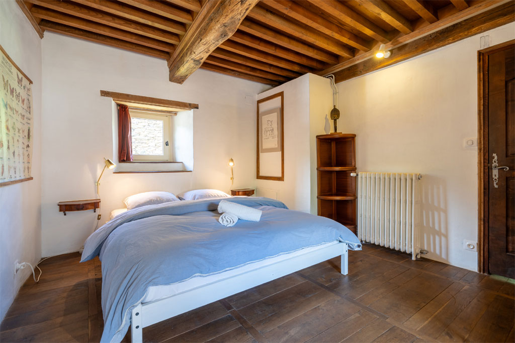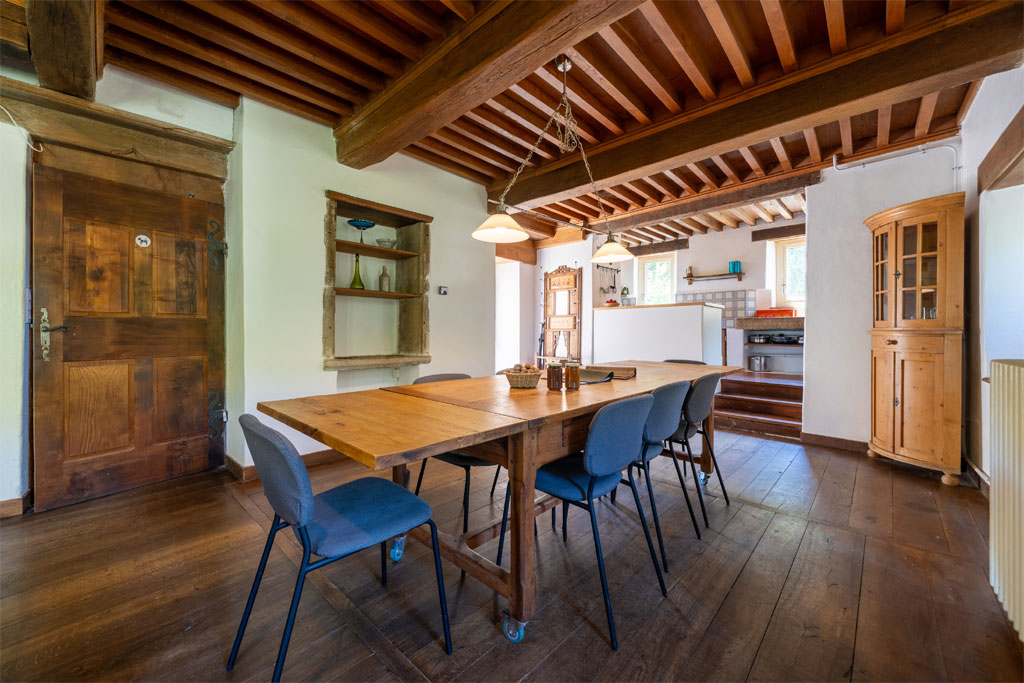 Baigné de lumière, ce gîte de 157 m² marie avec élégance le charme de l’ancien — cheminée, plafond à la française et fenêtre à meneaux du XVe siècle — au confort contemporain (fibre internet, chauffage central au bois).