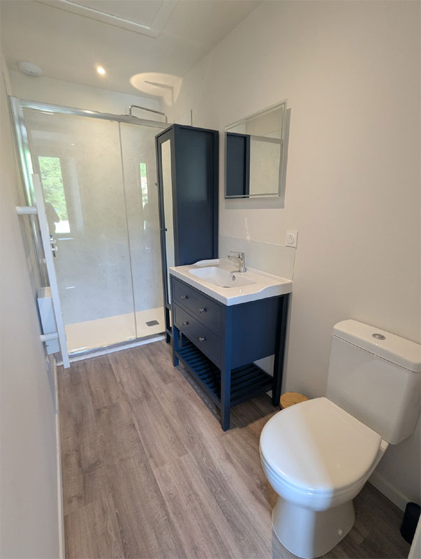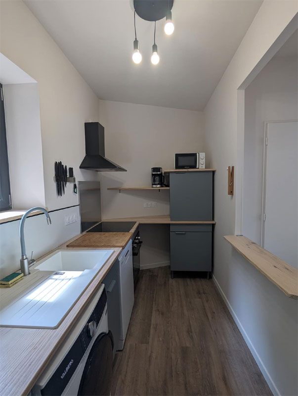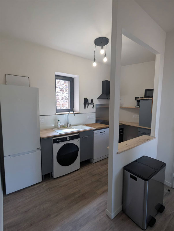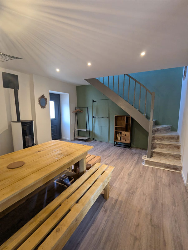 Notre gîte est composé d'une grande pièce à vivre et d'une grande terrasse en bois extérieur qui donne sur un terrain arboré et une rivière.