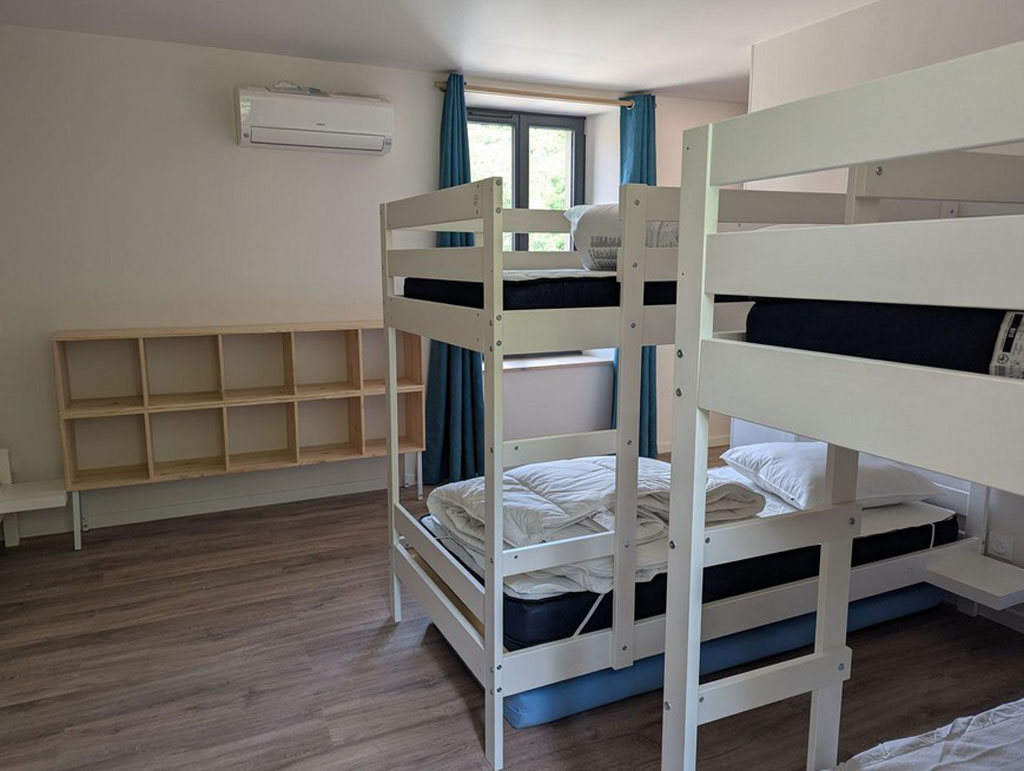 Vous y trouverez 3 chambres : 2 chambres avec un lit double en 140 dans chacune et 1 chambre qui est un dortoir avec 4 lits superposés (2 lits doubles et 6 lits simples). Ce gite possède 2 salles de bain également.