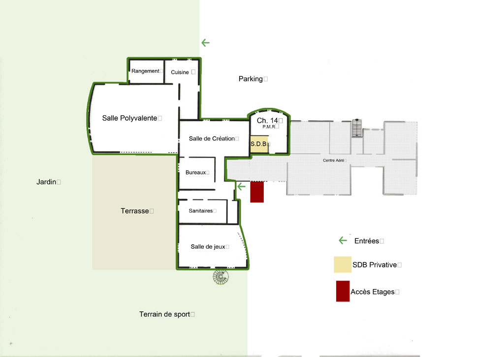 Hébergement avec accès à une cuisine semi-professionnelle, salle de création, salle polyvalente, salle de jeux, jardin, terrasse et parking privatif. Ainsi que la possibilité de réservé gratuitement un terrain de football, pour vos activités sportives.