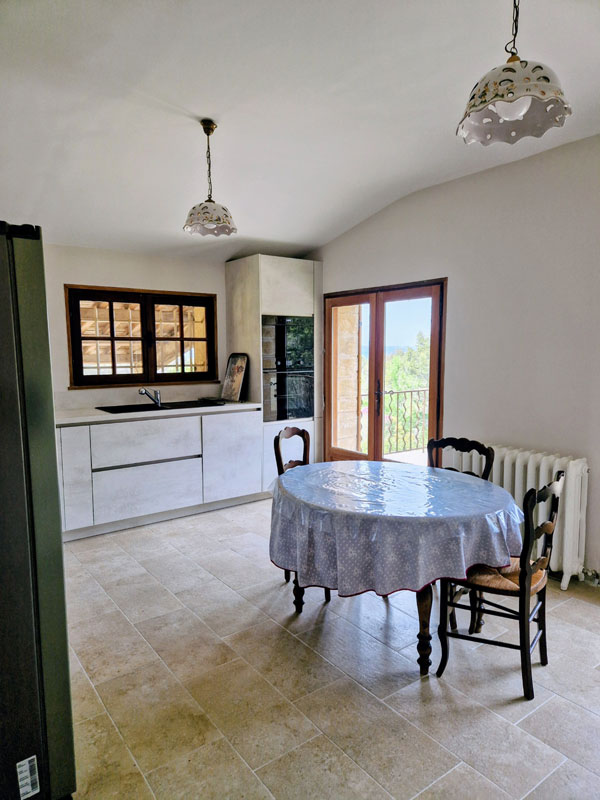 300 m² - Grande maison en pierre de 5 chambres, 2 salles de bains et 1 salle d'eau, 3 WC, 1 grand salon de 70 m² et 1 grande terrasse ombragée, 1 bureau attenant, 1 grande cuisine donnant sur une spacieuse terrasse avec vue sur la vallée.