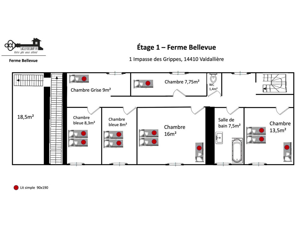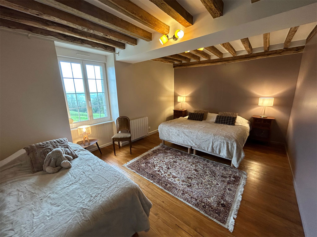 La Ferme Bellevue est une grande maison de campagne normande dans un corps de ferme pouvant accueillir jusqu'à 15 personnes, idéale pour un séjour en famille ou entre amis. Située près de Vire dans un cadre paisible avec vue sur la campagne, elle offre un grand jardin pour se détendre et profiter de la vue. Le gîte possède 8 chambres, 2 salles de bain et une surface de 200m².