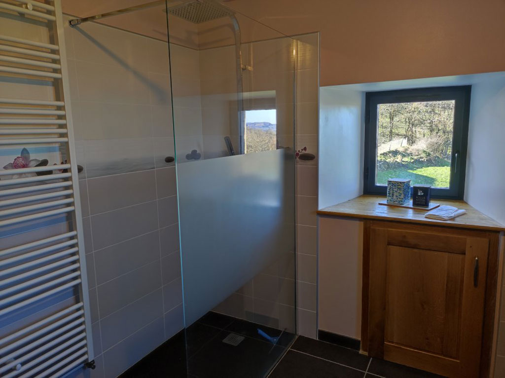 Distants de 100m environ, le gîte "du bas" et le gîte "du haut" totalisent 350 m² et 7 chambres, 3 salles d'eau, 3 WC et deux pièces de vie.