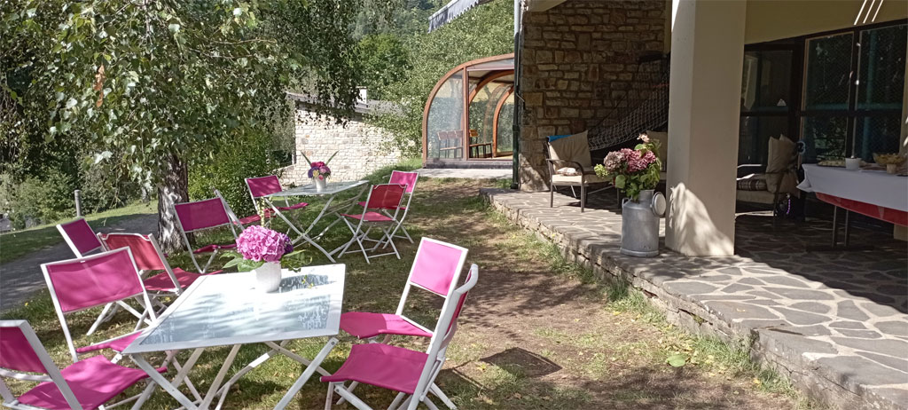 Pour chaque gîte : Terrasse - Store ban - Salon de jardin
