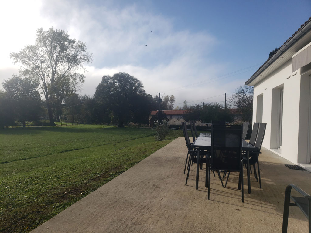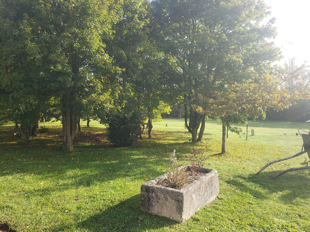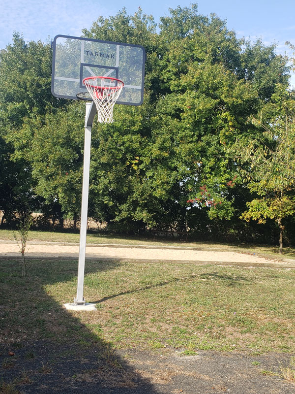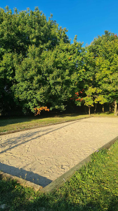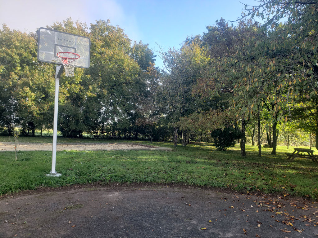 Une terrasse de 52 m², un jardin avec panier de basket, terrain de pétanque, le tout sur un grand terrain clôturé de 1 ha.