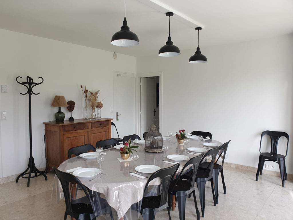 Gite de 150 m² et 4 chambres, 2 salles d'eau, 2 WC, une pièce de vie, une cuisine.