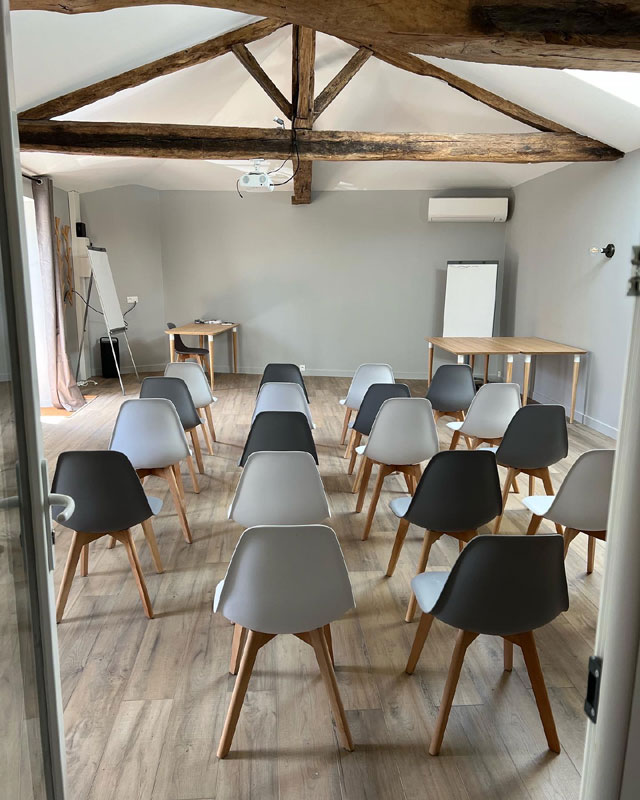 Une salle "polyvalente" de 60 m² peut accueillir les réunions, formations, cours de yoga...
