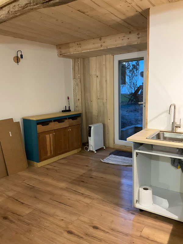 Annexe avec toilette et salle de bain, 1 lit double et 1 lit d appoint (1 pers.) avec salle de bain et toilette séparés. Convient pour 3 mais une famille ou des ados car les couchages sont dans la même pièce.