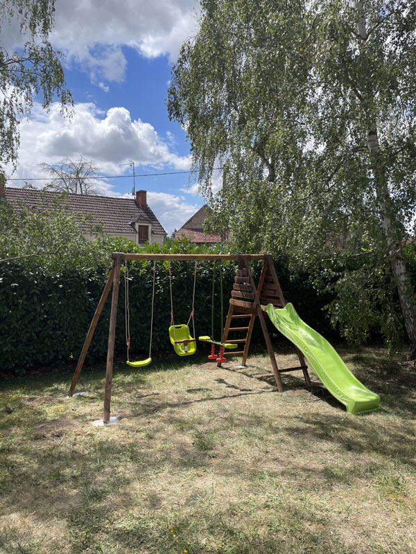 Terrasse - Barbecue - Chaises longues - Jeux d'enfants - Terrain de pétanque - Grand terrain de foot - Piscine demi-enterrée 10x5m profondeur 140, clôture avec barrière sécurité enfant