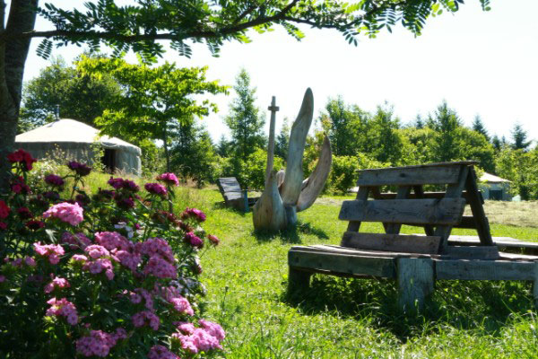 L'hébergement : en gîte, le bâtiment propose 4 chambres collectives (une salle de bain pour 2 chambres) permettant 14 à 20 couchages ; sur l'aire naturelle de camping, 3 yourtes vous accueillent (de 4 à 8 places) permettant 17 couchages supplémentaires et l'accès aux sanitaires communs du camping.