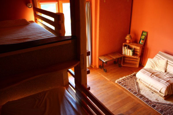 Dans le bâtiment, des chambres collective, des matelas en latex naturel pour un confort optimal, des toilettes à lombricompostage.