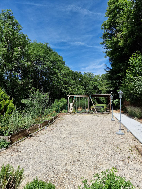 Balançoire - Jeux de plein air - Terrain de pétanque - Terrain de volley - Vélos