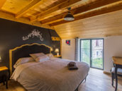 Un bâtiment de 100 m² (ancienne chaumière du XVIIeme siècle rénovée en 2005) composé de 4 chambres avec chacune une salle de bain et un wc privatifs, une cuisine salle à manger.
