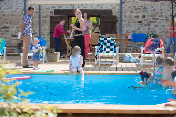 un jardin fleuri et clos de 200 m², une terrasse bois de 60 m² et une piscine octogonale sécurisée (6mx4m, profondeur 1,55m, barrière infra-rouge avec sirène haute puissance). Lieu idéal pour un regroupement familial ou professionnel, près de tous les services. Possibilité de commander vos repas qui vous seront livrés sur place.