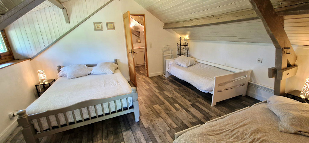 Le gîte comprend 7 chambres situées dans une longère annexe, chacune équipée d'une salle d'eau et de toilettes privatives. Le linge de lit, de toilette et le ménage de fin de séjour sont inclus dans le tarif.