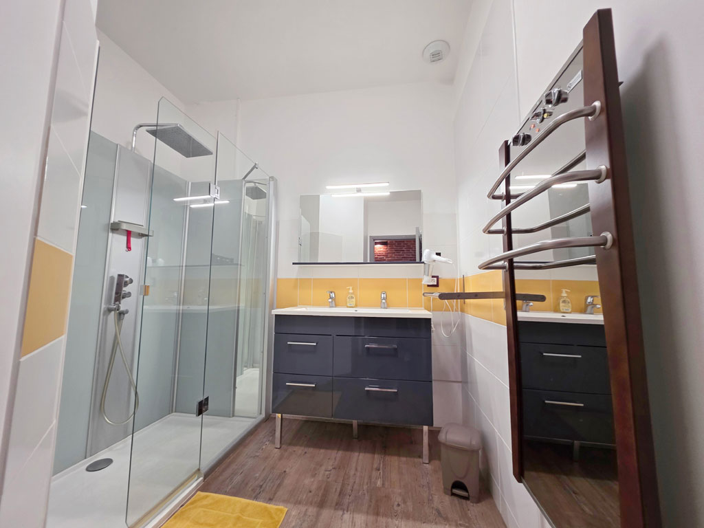 1 chambre pour personnes à mobilité réduite avec un lit double de 160x200, équipée d'une salle de bain et wc privatifs (18 m²).