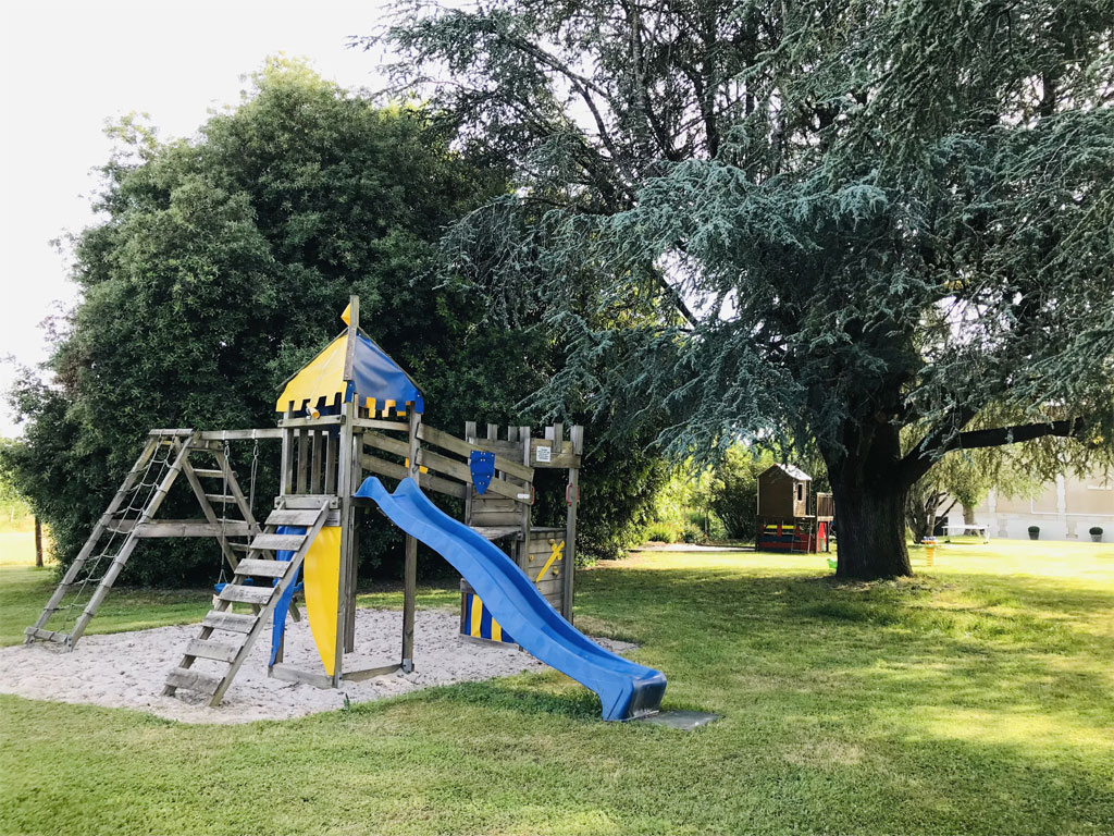 Le tout au sein d'un grand parc arboré d'un hectare avec plaine de jeux, terrain pétanque, ping-pong, piscine.