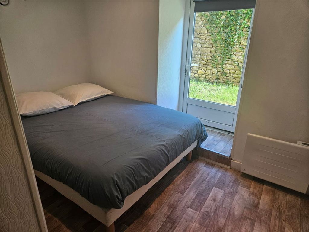Le Logis pour 4 personnes avec cuisine équipée, grande cheminée, salle de bain et chambre.