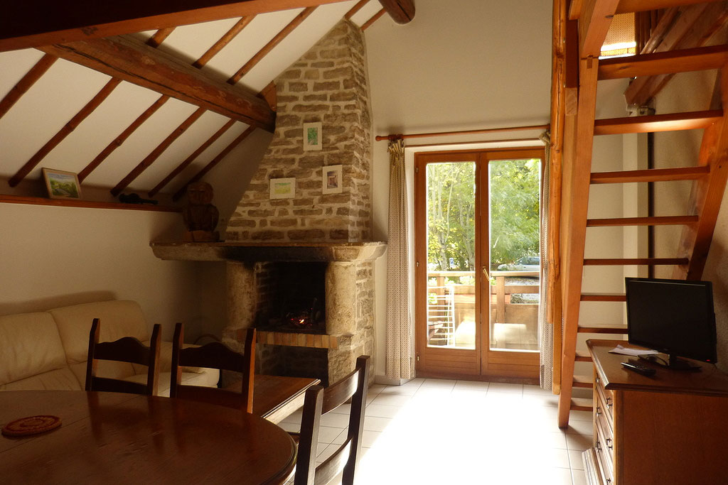 Situés dans le grand gîte, chaque appartement de 80 m² possède une pièce à vivre adaptée pour une dizaine de personnes.