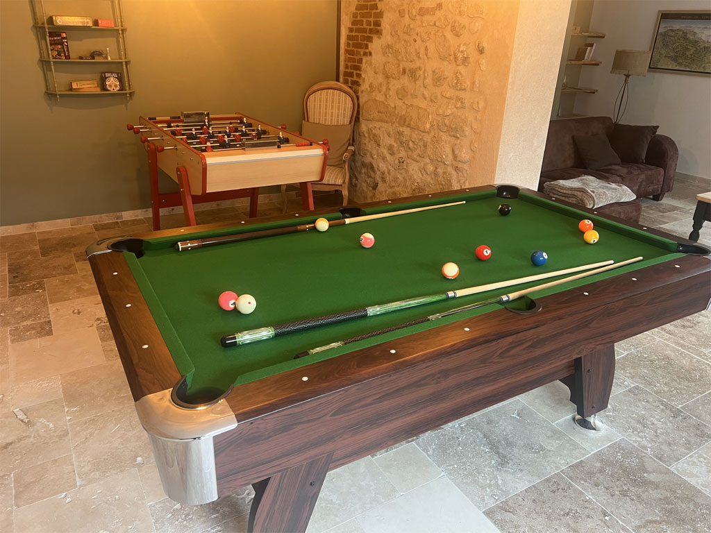 Cette grande bâtisse en pierre offre plusieurs espaces pour que chacun s'y retrouve : salle de jeux, salon de lecture, et côté bar moments de convivialité garantis !