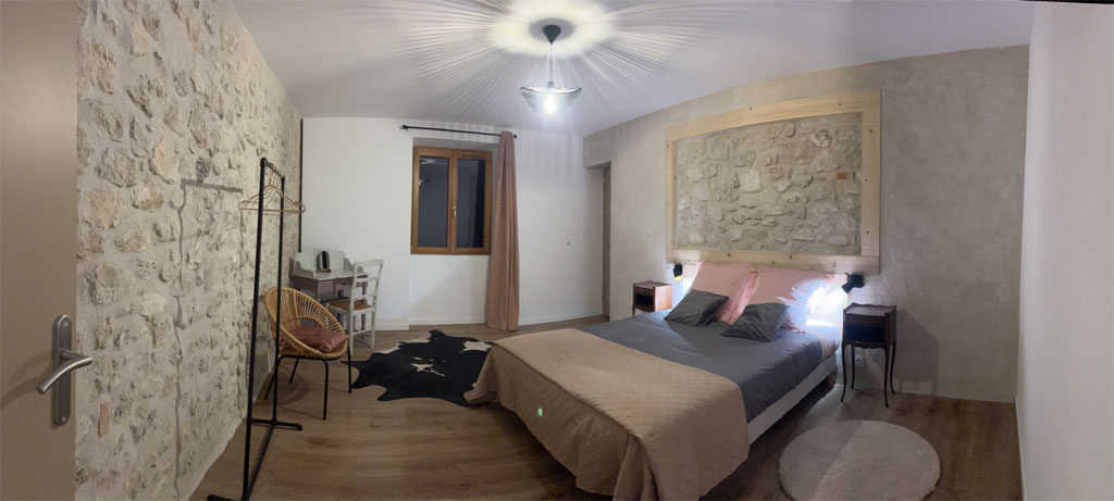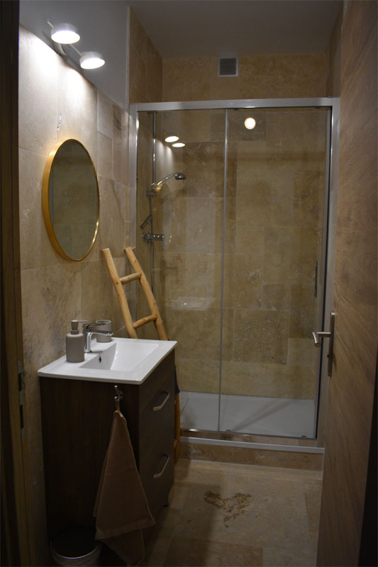 - Au 1er étage : 4 chambres chacune avec salle d'eau et wc privatifs (1 lit 160 - 1 lit 160 - 1 lit 140 - 4 lits en 90 superposés + 1 lit en 120)