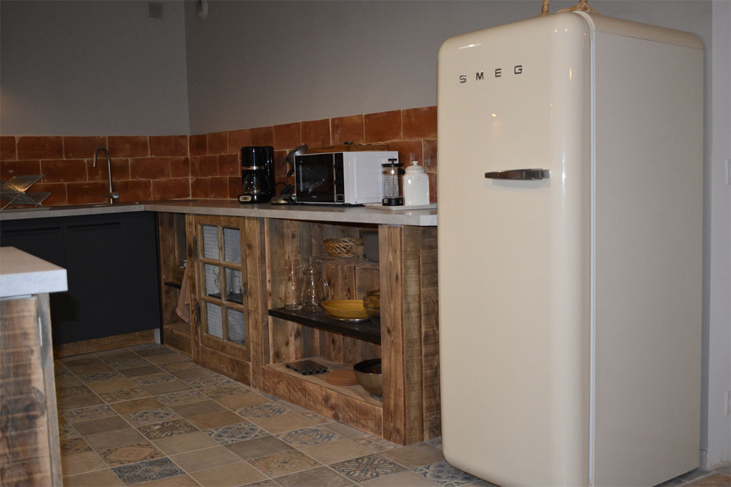 Réfrigérateur-congélateur - Cuisinière XXL avec 5 feux gaz + four électrique - Micro-ondes - Appareil à raclette, fondue, pierrade, crêpière, plancha - Cafetière - Bouilloire - Grille-pain... Vaisselle - Lave-vaisselle - Lave-linge