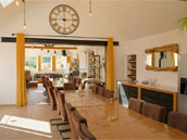 Salle à manger séjour de 130 m² permettant de recevoir 40 personnes à table. Le tout sur une hauteur de 5m avec une superbe luminosité.