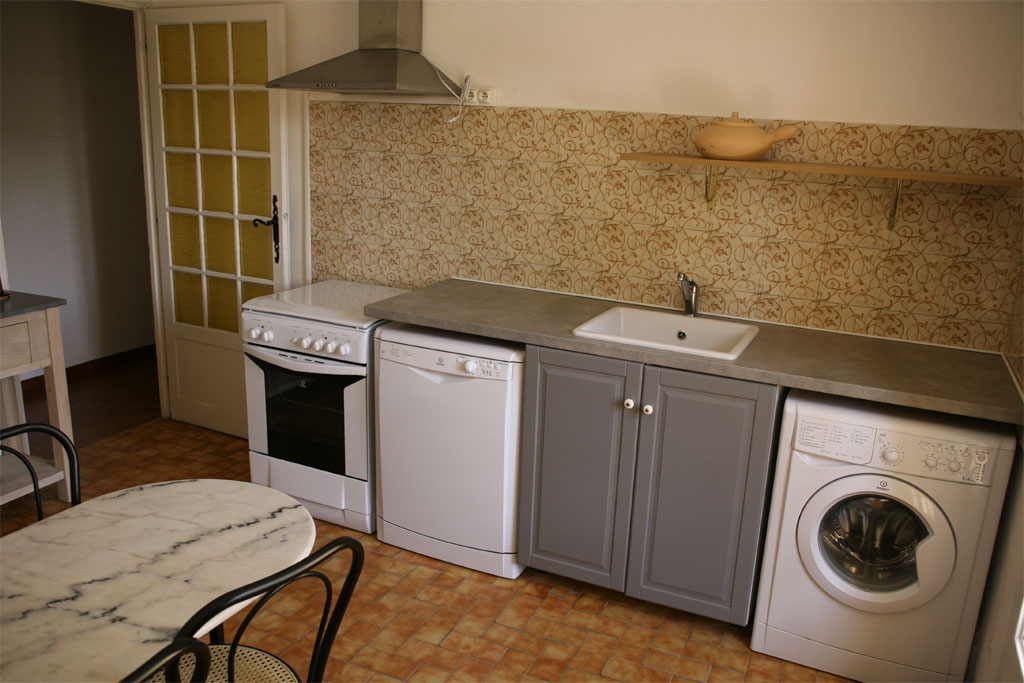 Appart. Aino (exemple) : Réfrigérateur-congélateur - Grande cuisinière - Four - Micro-ondes - Vaisselle - Lave-vaisselle