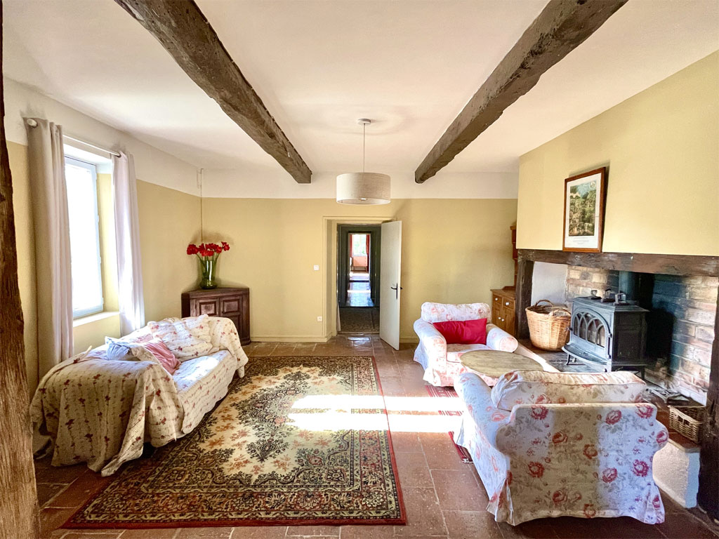 - Un joli salon avec poêle à bois et TV grand écran (52 m²)