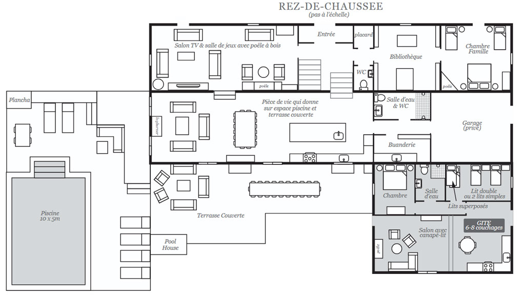 - 10 chambres, 5 salles d'eau, 6 WC