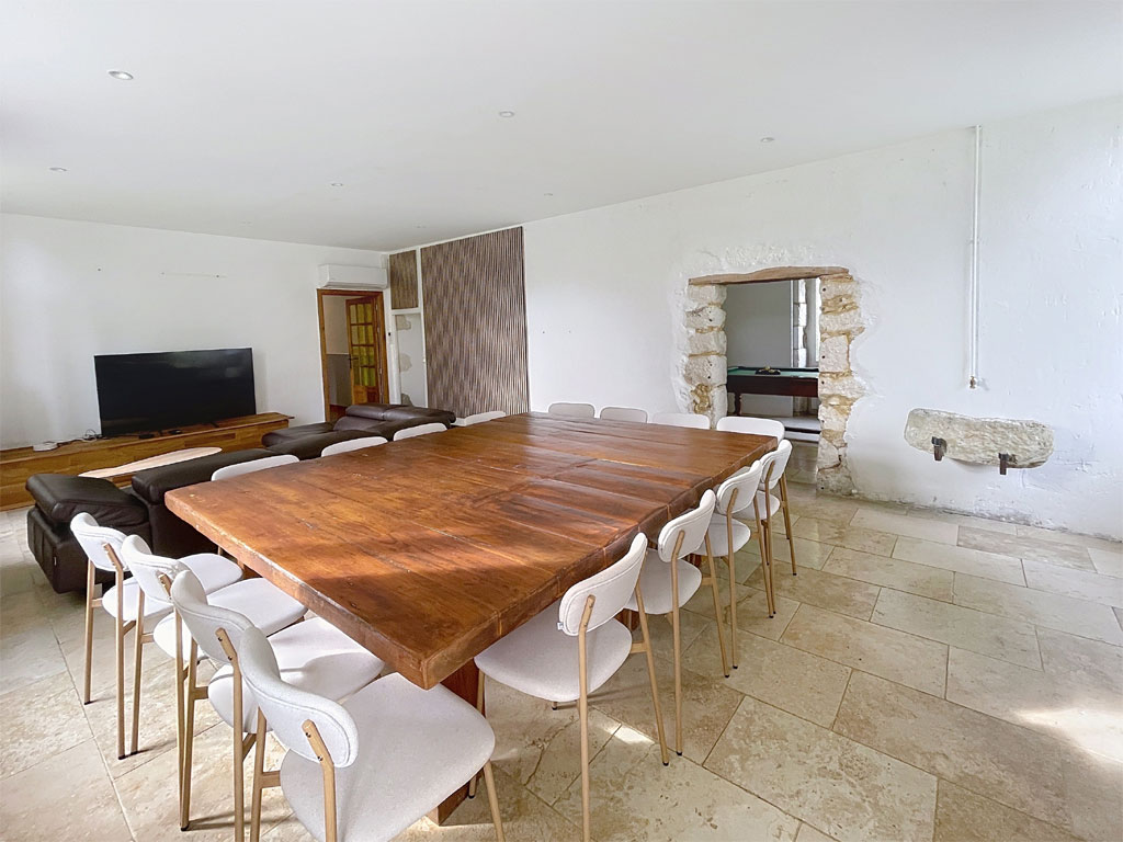 - 1 pièce à vivre / cuisine / salon avec cheminée TV canapés et table pour 15