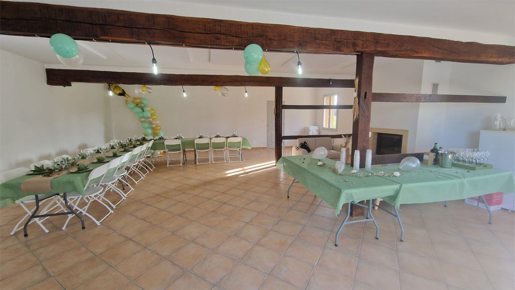 - Sur place, une salle de réception de 80m² et 40 places à table.