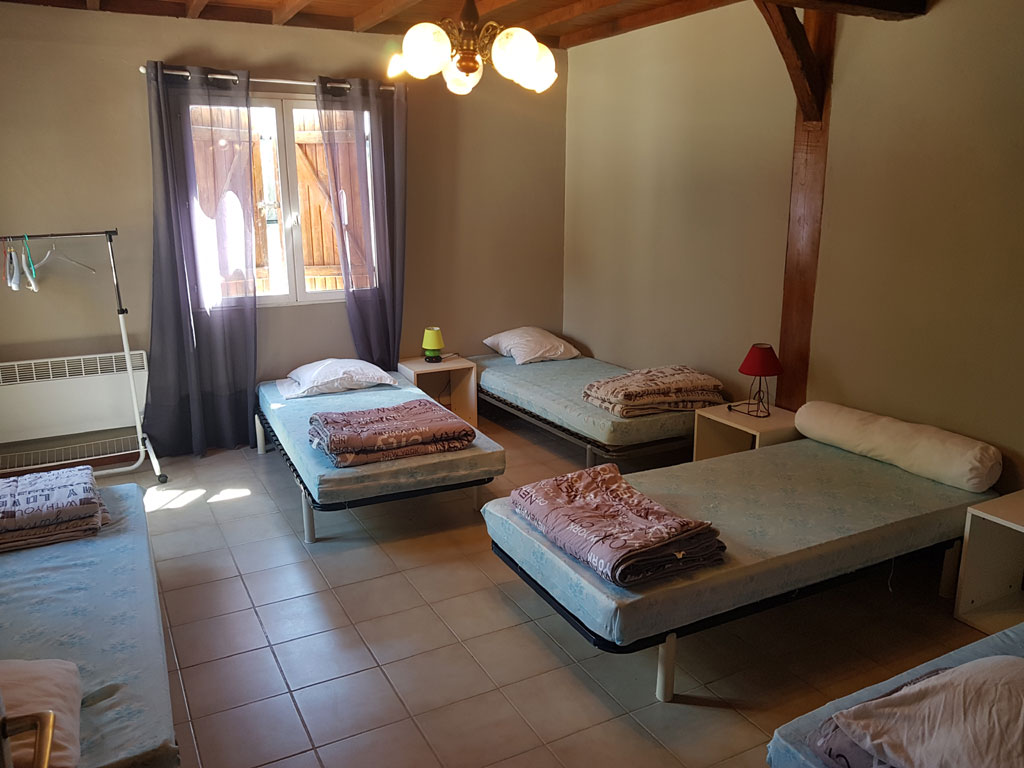 2 chambres avec lit double + lit 1 place, 2 chambres avec lit 2 places, 1 chambre avec 5 lits 1 place