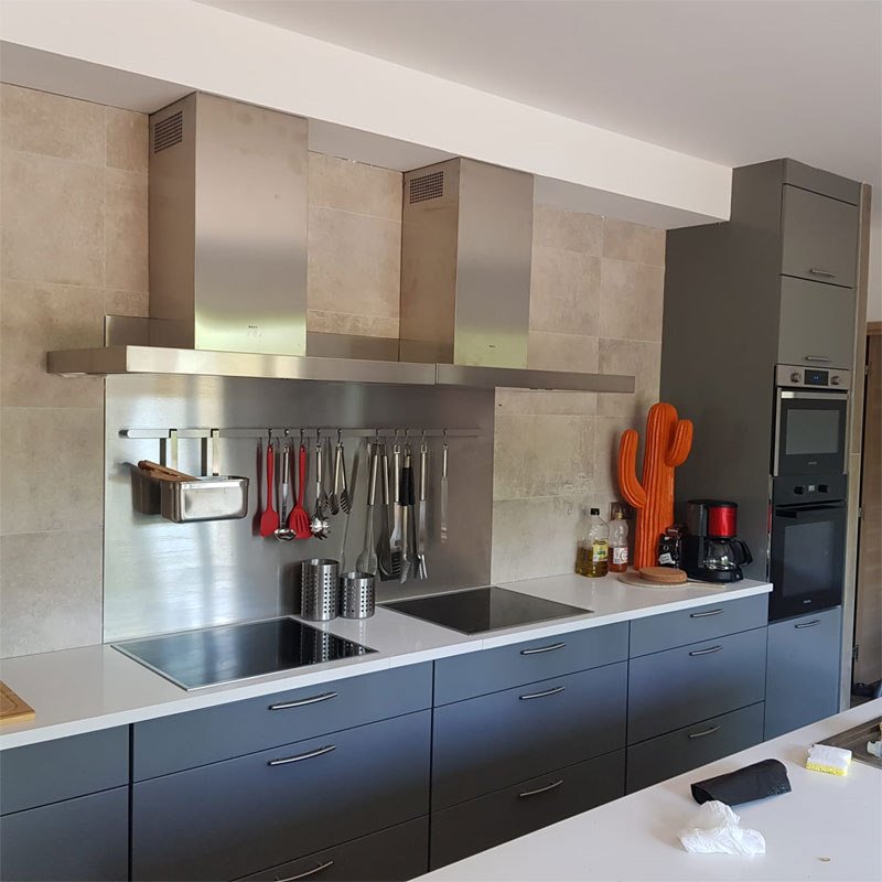 Réfrigérateur - Congélateur - Plaques induction (x2) - Four - Micro-ondes - Vaisselle -