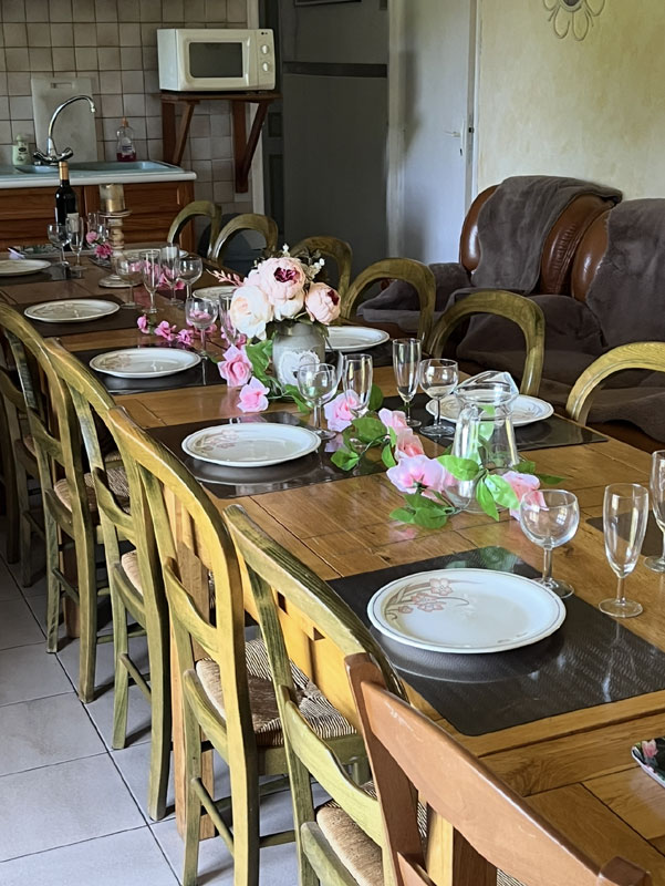 Gîte de plain-pied de 200 m² et 6 chambres, 5 salles d'eau et 5 WC et une grande cuisine équipée avec table 15 personnes. Dans bâtiment annexe, grande pièce salon avec billard, baby-foot, fléchettes. Des transats et tables dehors pour les repas.